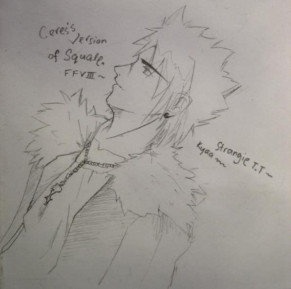 @Eureka O.o..I duno bleach much~ BUT.. Dat Lil Patrick really lookies funnweee =X~!! @Pappy Good Drawings XD..The gals r pretty KaWaiiiiii =3 Maia wud luv ter see this =P @Red Very cool drawin u got there ^^~! Really envy cha fer knowin how ter use photoshop T.T @Imppy GooDies~!! Kawaii wolfies~!! XD!! *Snatches it away from Eureka* It's MINE~!! =x Keep postin minna^^~I'm startin 2 get addicted ter this thread =P~ Here's a lil drawin of Squall from FFVIII =3 I've drawn it accordin ter my style >.<"".. Added sth extra.. Hopies he lookies fine @.@ *sobbiex..* |
