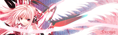 @ Snowe: Welcome!! And I really like your work too >.< Always the color :3 Wow, I'm obsessed. The first one...i like how the BG matches the character really well. ^^ The siggy is nice too :D Except the animation, to me, seems a bit fast paced. Maybe set it a few seconds slower or so? It's fine, but I just think you could play around with it? :D you look more experienced i do, so i'm not trying to give a lecture or anything xD |