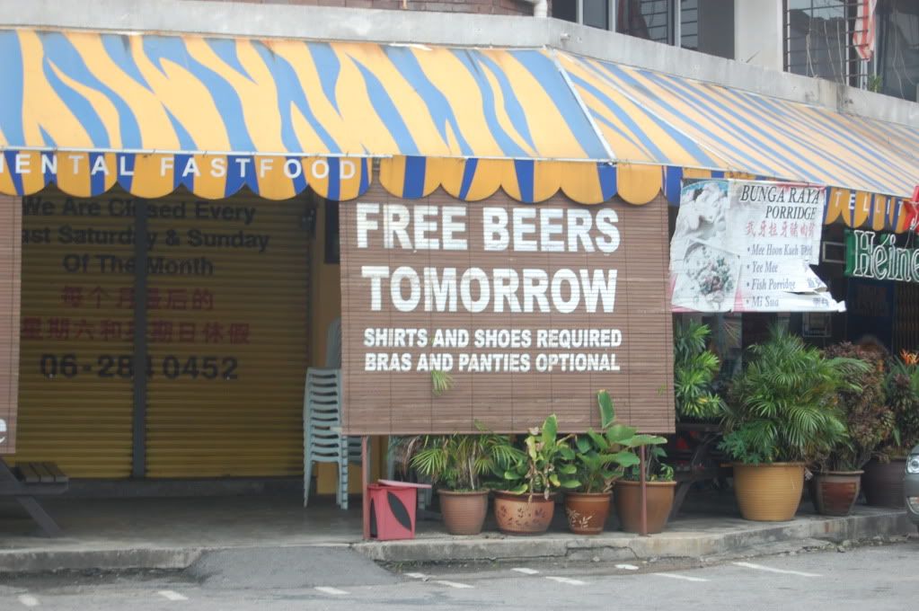 @ Malacca eh... the place still holds painful memory... of having to sit in the coach for 8hrs for a supposed-to-be 2.5 hrs ride due to massive jams at various points of the journey. Nonetheless... great pic... though the part about Bra and panties optional does makes the mind wonder~ Haha!! Seems to me like we've got a "H" DA here~~ XP |
