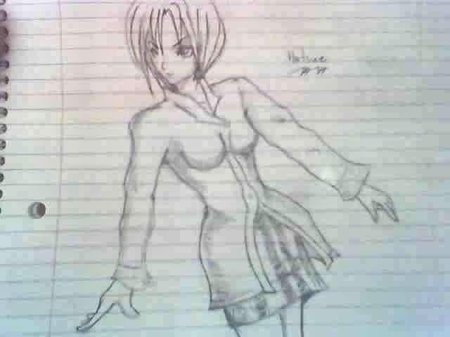 Heya everyone! Amazing how many new pics there are per day! I'll try to cut down on comments to save space, typing a page is tiring... Oh yeah, here's a quick contribution for the weekend! It's a quick original sketch for my friend. He wanted concept art for a manga of his, so I present Hatsue(rough concept): ![]() ![]() Please forgive the poor pic quality, I need a scanner soon! Please post any suggestions for improvement! Right then, @Eureka, heya! Pic 1: WHOA! This might be one of the best pics you've ever posted! You got everything down perfect! I wanna go play KH now, great job there! @Shinji, Pic 1: Super Chibi Inuyasha and Kagome look really cute together! Very nice! Pic 2: lol Super Chibi rock throw! Not bad at all, I really like that one! @Rei, Pic 1: It's Ayanami-san!!! I love Ayanami, you did very well drawing her! Quite impressive! @Sai, welcome back! Sorry bout the flood thing... @Imppy, LOL LOL LOL Pic 1: LOL I love this! Death Note is my fave manga and you captured the spirit perfectly! I love the Chibi Light Yagami in the corner too! Oh, excellent job there Imppy-sama! @Benfok, welcome! Pic 1: how amazingly random your art style is, yet I really enjoy simply seeing the crazy variety! The toothpaste snake is hilarious too! You've got a great ability to draw whatever you imagine, very nice! Pic 2: Incredible! This Sabe sketch is very very well done! The carrots add a great deal to everything too! Excellent! Pic 3: lol Giant bowl of noodles! Ranma 1/2 is a pretty amazing show to get inspiration from, so nice choice! The pose is cool too! Pic 4: Whoa! Belldande looks AWESOME here! The face especially is spectacular! Quite outstanding! @Neko-sama, Pic 1: Very stylish job there! I love the poses and cool atmosphere, so great job there! @Dragonfly, Momo Adachi! Gotcha, lol, thanks! Pic 1: First of all, your foot looks REALLY realistic! Nice! Now then, I remember good old Sasuke! He looks very cool!! The different shades of blue add a ton to the pic! It's like Anime-Picasso! Great paint skillz! @Red, hey welcome back, Pic 1: Recant Faulkner looks incredibly well drawn! Even for a sketch, this character deserves a story! The costume's pretty cool too. Pic 2: Very detailed sketch! He's got a Trigun flair to him, plus the background looks really well done!!! Oh kay, amazings pics everyone! Have a nice weekend! |