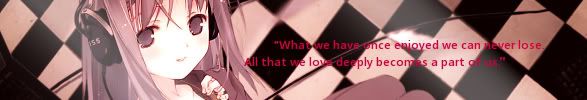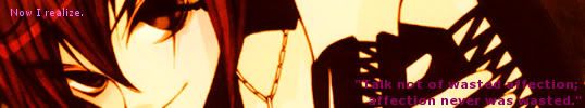 > Have no idea how to use GIMP >.>; Well... Quack! You are complitely right! You start from somewhere, if not you can't start XD I liked your "Kisuke's Space". A bit more work on it and it will be Wow! X3~ Xynuki! Looong time no see~ I love your FF sig~ You did a good work on it~ Empooo~ You rox and you know that ;3~ Darky~ Kawaii sigset :D yay up with this tread! |